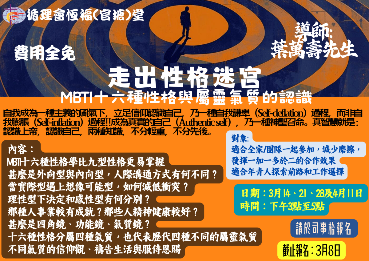 循理會恆福(官塘)堂-走出性格迷宮 MBTI十六種性格與屬靈氣質的認識